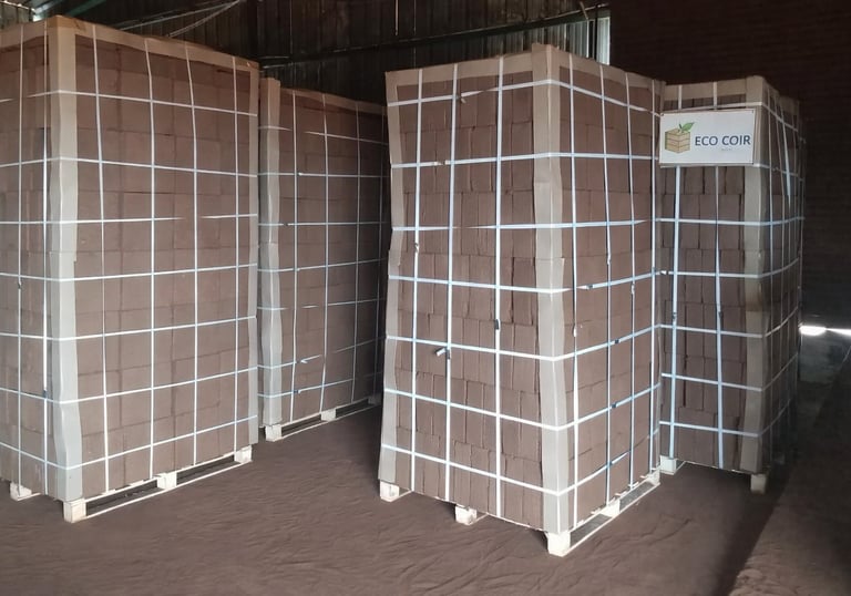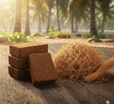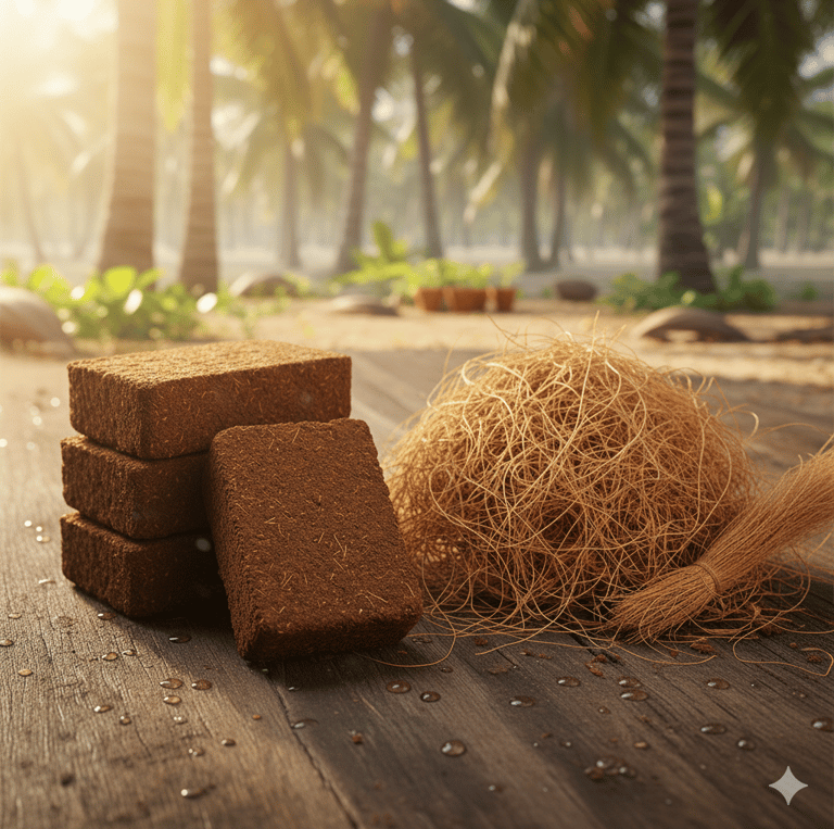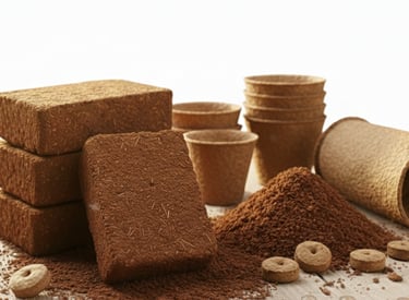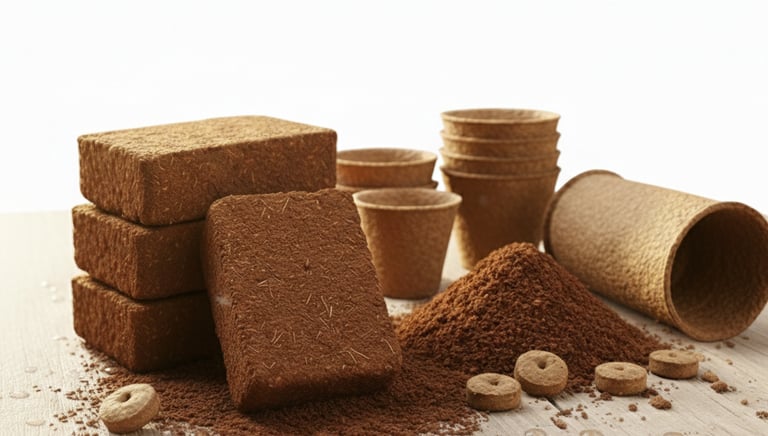 Coco peat bricks, grow bags, and discs designed for thriving plants.